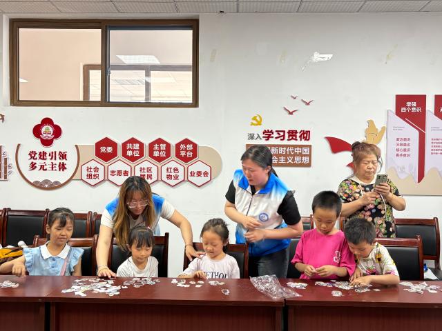 志愿者给社区里的小朋友们讲述书签的制作流程,与小朋友们一起共同寻找独特的树叶。树叶是大自然的馈赠,它们形态各异、色彩斑斓,是天然的艺术品,在挑选树叶时,小朋友们认真观察身边的花草树木,不禁感叹大自然的神奇多彩。在书签的制作中,志愿者鼓励小朋友们充分发挥创造性,协助小朋友们把树叶裁剪成不同的形状,将漂亮的贴纸粘到书签中,共同制作出独具特色、样式精美的创意书签,看到书签的成功完成,每个人的脸上都洋溢着笑容。小朋友们积极参与到手工实践中,在实践中感悟自然的美好,在制作中理解将树叶保存为书签的特殊意义,并纷纷表示,在阅读时看到亲手制作的书签,增加了阅读的兴趣,品味阅读的过程。