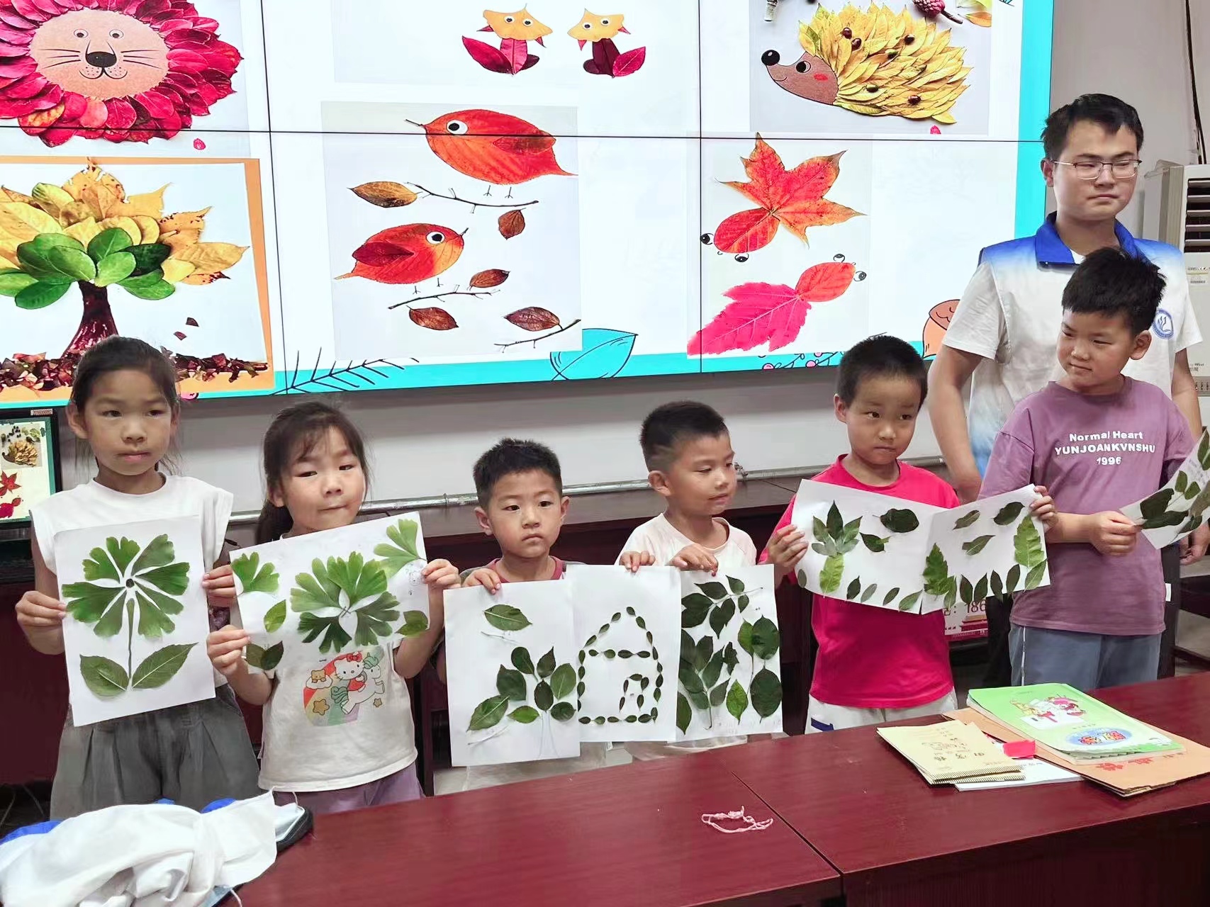 植物繁茂,生命欣荣。活动伊始,同学们落实“一志愿者一小朋友”原则,带领孩子们观察叶片的形态、颜色和细节等,并向小朋友们介绍了树叶的特点和多样性。在活动过程中,小朋友们添加自己的创意和特色于自己的作品中,并用树叶拼贴成不同的图案和形状制作画面,如树叶小动物、树叶拼贴画等。他们兴致勃勃地在大地的“画布”上创作着自己的作品,欢声笑语不绝于耳。活动氛围温馨愉悦,小朋友们在创作的过程中不仅锻炼了动手能力,也更加深刻地认识到了大自然的奇妙和美丽。活动最后,小朋友们互相分享自己的感受和收获,大胆分享自己的创作的灵感来源。小朋友的家长表示,本次活动不仅激发了孩子们的创造力和艺术天赋,也让孩子们深刻感受到了大自然的美好和神奇,是一次恰到好处的美育课程。