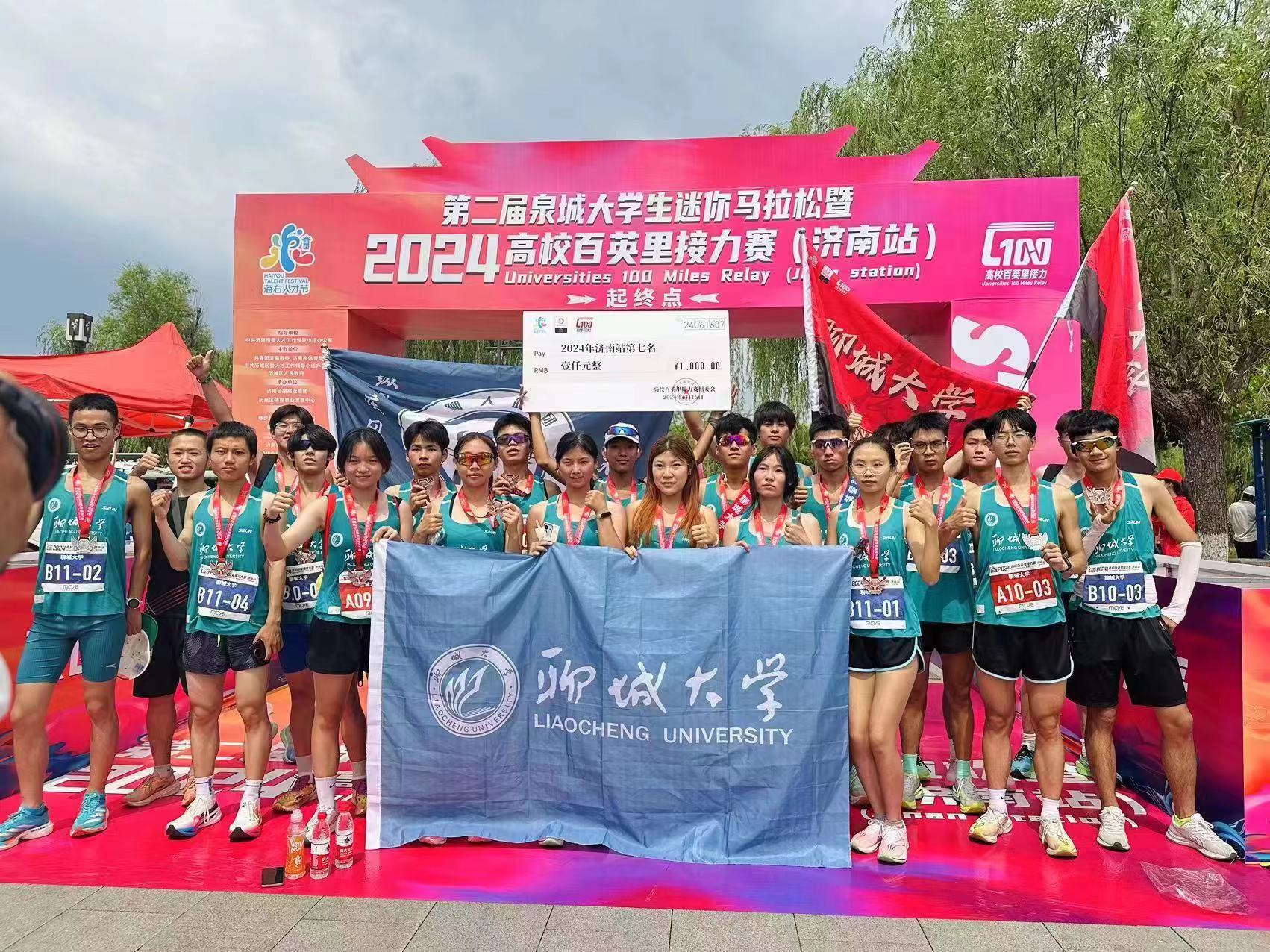 比赛当天,聊大跑团的队员们早早抵达赛场,紧张而有序地进行着最后的热身与准备。随着发令枪响,第一棒选手飞奔冲出起点线,拉开了这场百英里接力赛的序幕。在比赛中,聊大跑团的队员们默契配合,接力棒在每个人手中传递得既快速又稳定。每一次接力棒的交接,都伴随着队员的鼓励与呐喊,这不仅是对队友的信任与支持,更是对胜利的渴望与追求。队员们充分贯彻日常训练的方法,在保证体能的同时,不断激发个人的潜能。在关键的冲刺阶段,队员们以拼搏的精神和顽强的毅力,向着终点奋勇前进。更是拼尽全力,以最快的速度冲向终点。聊大跑团充分彰显了聊大学子挑战自我、超越极限、坚韧不拔、永不放弃的良好精神风貌,以出色的表现和稳定的发挥,在43支队伍中突出重围,获得第七名。