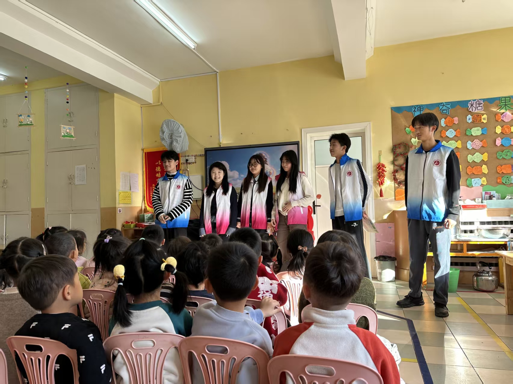 活动中,志愿者化身“环保小老师”,结合PPT以风趣语言讲解四色垃圾桶识别、垃圾正确分类等基础常识,并借助环保短视频、短剧演绎,将抽象知识直观化,有效强化了小朋友对垃圾分类重要性的认知。在“创意绘地球”环节,志愿者引导幼年儿童通过创作,在绘画中表达环保与垃圾分类理念的同时,结合垃圾分类小游戏和问答互动,助力小朋友们灵活运用所学知识,进一步深化了幼年儿童对绿色生活理念的认识与理解。