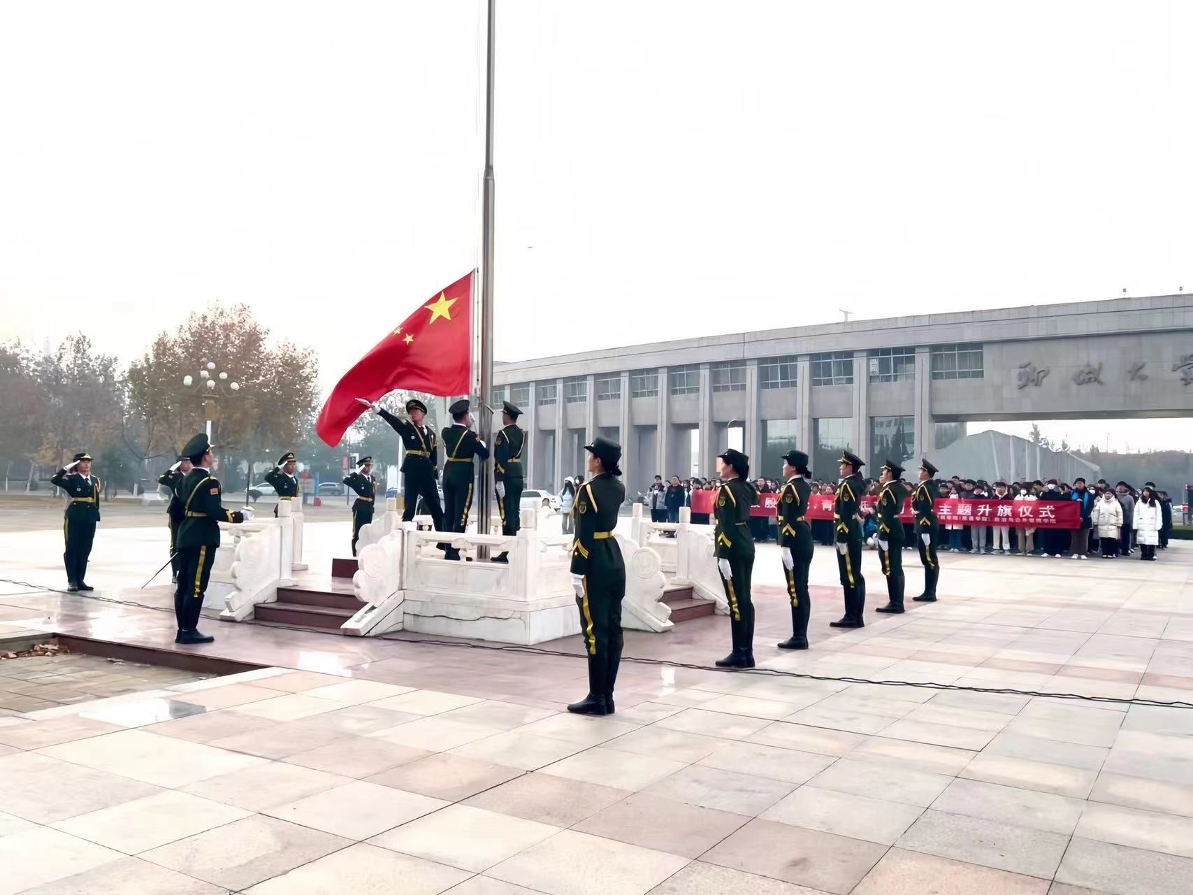 为加强青年学生的爱国主义教育,提高学生的凝聚力和向心力,鼓励青年学生心存鸿鹄之志,以实干笃定前行,11月27日,永乐高131net(质量学院)、政治与公共管理学院于西校区十一广场共同承办了“时代殷殷嘱托,青年砥砺前行”主题升国旗仪式。政治与公共管理学院党委副书记乔华军,团委书记于进,永乐高131net团委书记刘玉华,以及两个学院全体辅导员和学生代表共约400人参加活动。
