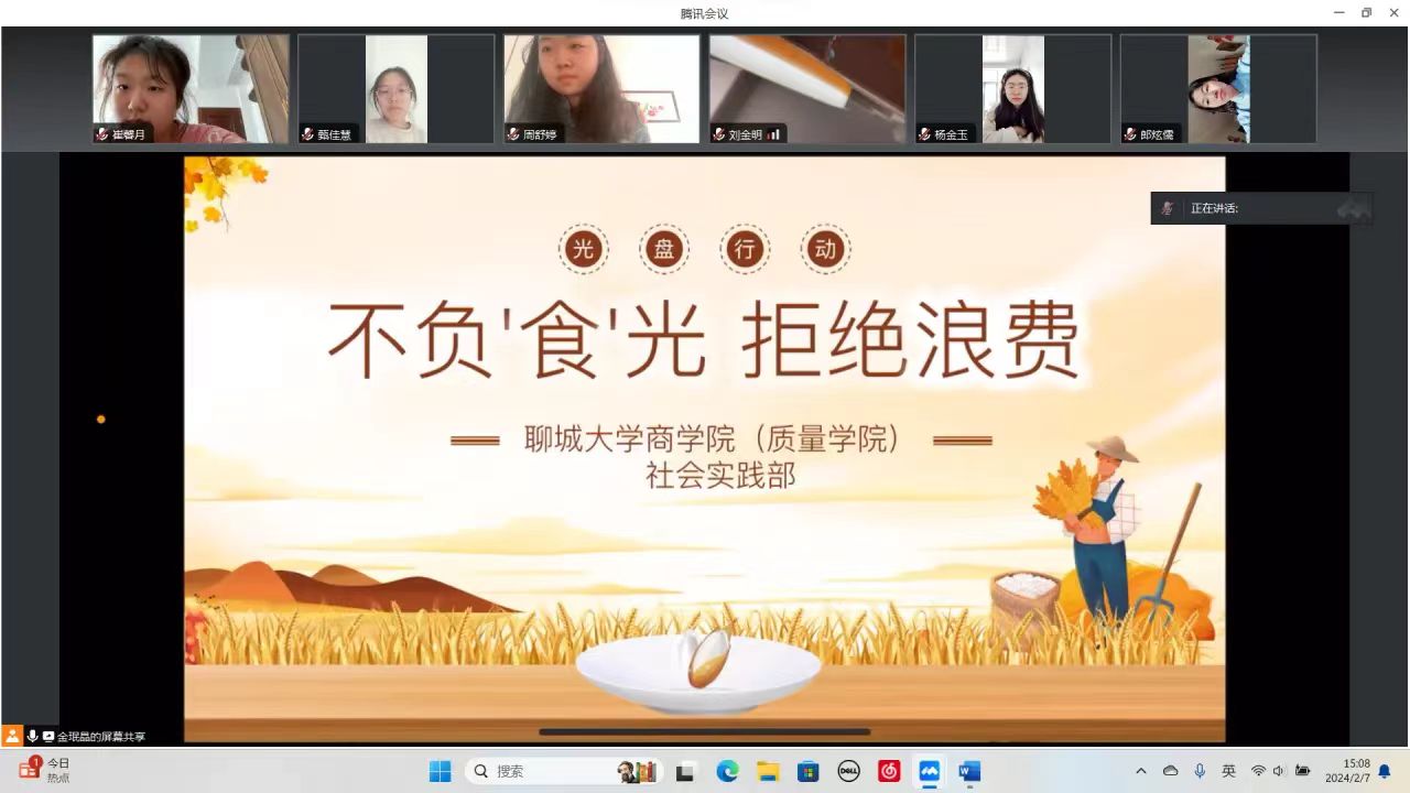 为进一步弘扬中华优秀传统美德,加强团员青年们的思想道德建设,培养广大青年爱惜粮食的优秀品质,2月29日,永乐高131net(质量学院)社会实践队开展“不负'食'光 拒绝浪费”线上宣讲活动。