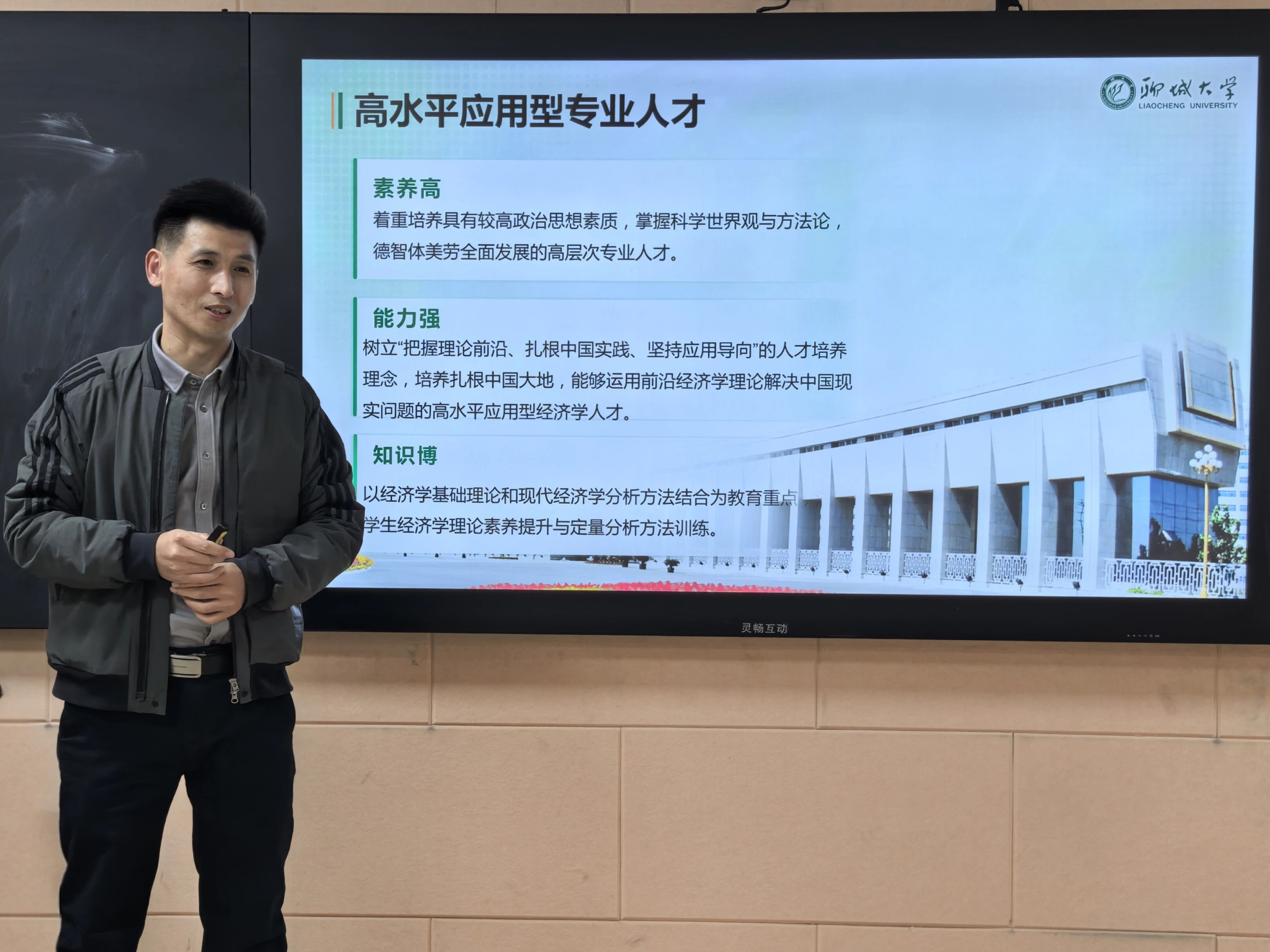 自学校学风建设工作全面推进以来,我院立足“育经世致用英才,做富国裕民文章”的院训,统筹部署并实施了“经世”“致用”“富国”“裕民”四维学风建设体系,致力于打造一个全维度、长效化的育人新生态。作为该体系中代表“经世”维度朋辈帮扶系列的重要组成部分,为助力学生精准把握考研方向、科学规划备考进程,10月24日,永乐高131net(质量学院)于东1#212-2室开展“研在聊大·智启未来”应用经济学考研指导专题讲座。学院副教授、经济系主任宁朝山受邀担任主讲人。