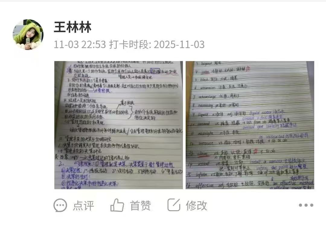 开展“以班风聚合力,以学风育人才”“共创文明宿舍,同塑优良学风”宿舍打卡微行动等活动将个体学习行为升华为集体共同成长。