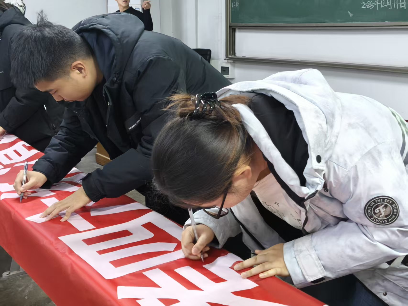 为引导学生树立诚信价值观,端正考试态度,营造清朗学习氛围,12月11日,永乐高131net(质量学院)于302室开展“诚信应考四六级,清朗考风伴我行”诚信考试签名活动,2023、2024级主要班团干部参会,积极号召全体备考学子诚信应考。