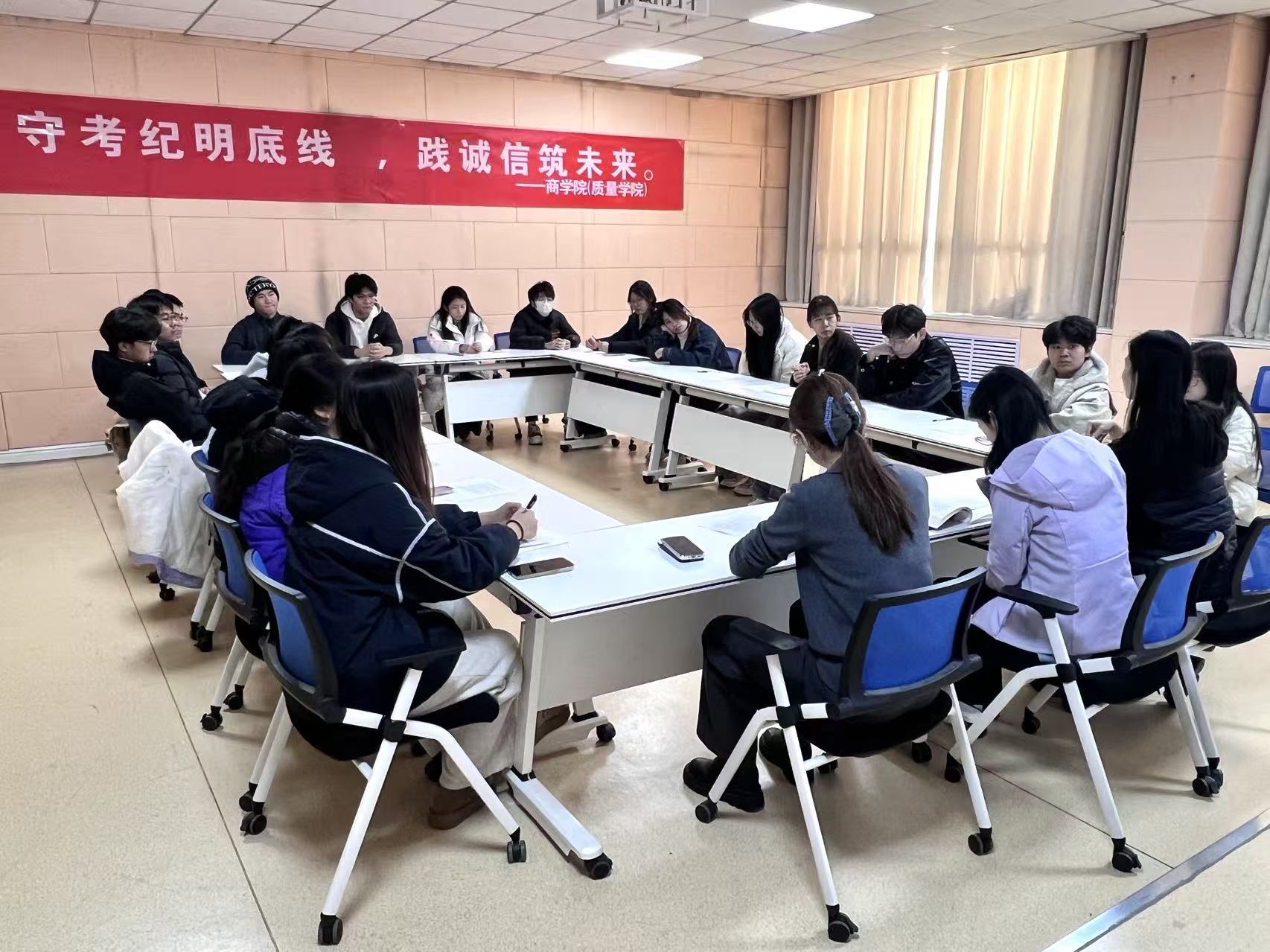 为引导学生树立诚实应考观念,营造公平公正的考试氛围。12月29日,永乐高131net(质量学院)于东1#212-2室开展“守考纪明底线,践诚信筑未来”考风考纪座谈会,辅导员巨梦薇、施安琪、杜林喆出席会议。