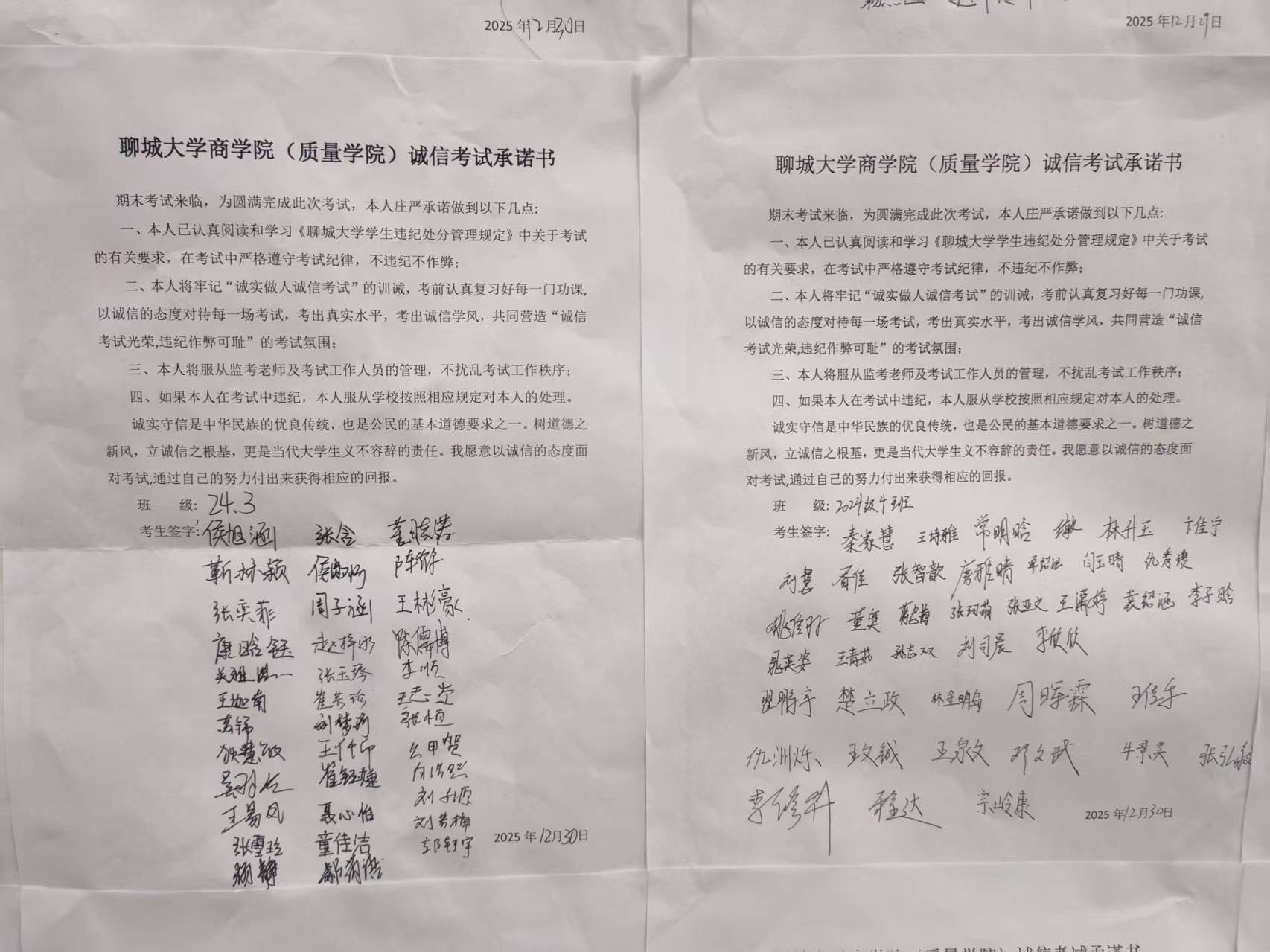 学院组织全体学生签订《期末考试诚信承诺书》,明确违纪作弊情形与后果。学生们郑重签字,这不仅是对诚信应考的承诺,更是对学业责任的担当。此举让“诚信考试”理念深入人心,从思想上杜绝作弊想法。
