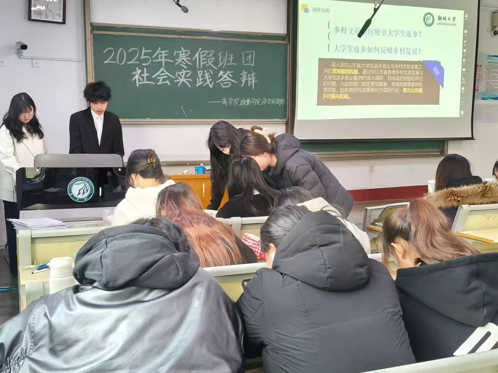 为全面检验学院寒假社会实践工作开展情况,进一步提升学生创新意识和实践能力,2月20日,永乐高131net(质量学院)学生会社会实践部于教学楼301室组织开展2025年寒假社会实践答辩活动,学院主席团及社团联合会主席团成员担任评委。