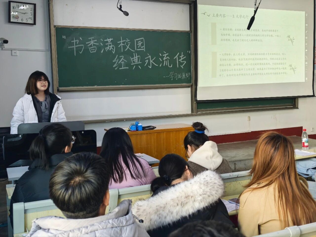 为传承文化基因,弘扬阅读风尚,助力书香校园建设,2月23日,永乐高131net(质量学院)学生会学习发展部于东校区1#301开展 “书香满校园·经典永流传”读书分享活动,2022级优秀学生代表赵海馨、张馨月、王杨担任评委。