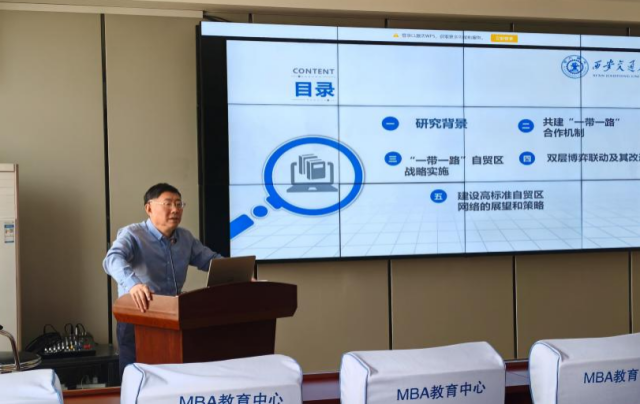 冯宗宪教授的报告包括共建“一带一路”合作机制、“一带一路”自贸区战略实施、双层博弈联动及其改进、建设高标准自贸区网络的展望和策略四部分。冯宗宪教授指出,“一带一路”合作涵盖基础设施建设、产能合作、经贸、金融、科技、社会、人文交流、生态环保等领域,带动全球国际合作效应显著充分体现了“一带一路”倡议的共享性与开放性;“一带一路”自贸区战略形成了一个覆盖亚洲、欧洲、非洲、大洋洲和拉丁美洲的广泛自贸伙伴网络,逐步构建了面向全球的自由贸易区布局;以2000年提出的中国一东盟自由贸易区的构想为开端,中国的自由贸易区建设大致可以分为起步实践、稳步发展、快速推进和扩展升级四个发展阶段;“一带一路”合作建设面临着战略机遇与问题挑战,国际环境中的不确定、不稳定、不可控、不可预测因素明显增多。