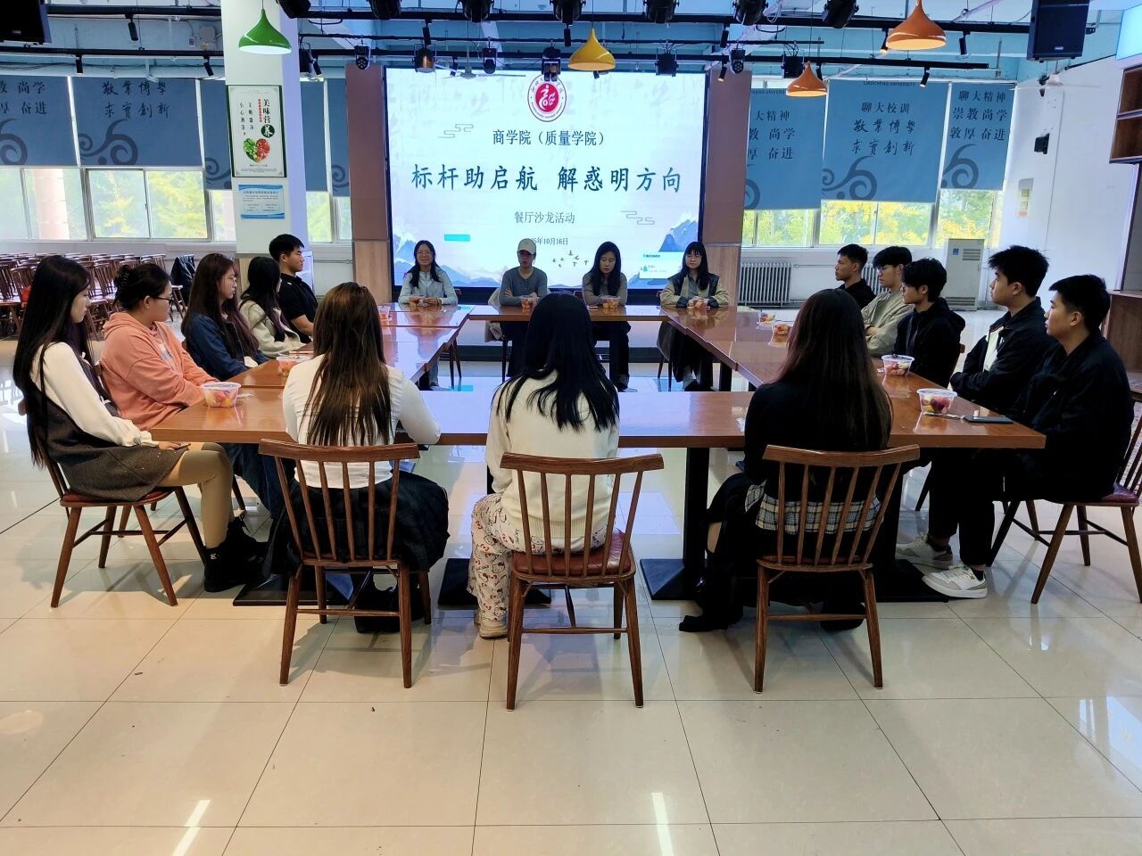 为深入推进学院学风建设,营造积极浓厚的学习氛围,10月16日,永乐高131net(质量学院)于东校区翰苑餐厅二楼举办“标杆助启航 解惑明方向”主题餐厅沙龙活动。2023级6班甄佳慧、2023级11班周于涵受邀分享学习与学科竞赛经验,学院辅导员韩亭亭、刘聪睿及2024级各班学习委员参会。