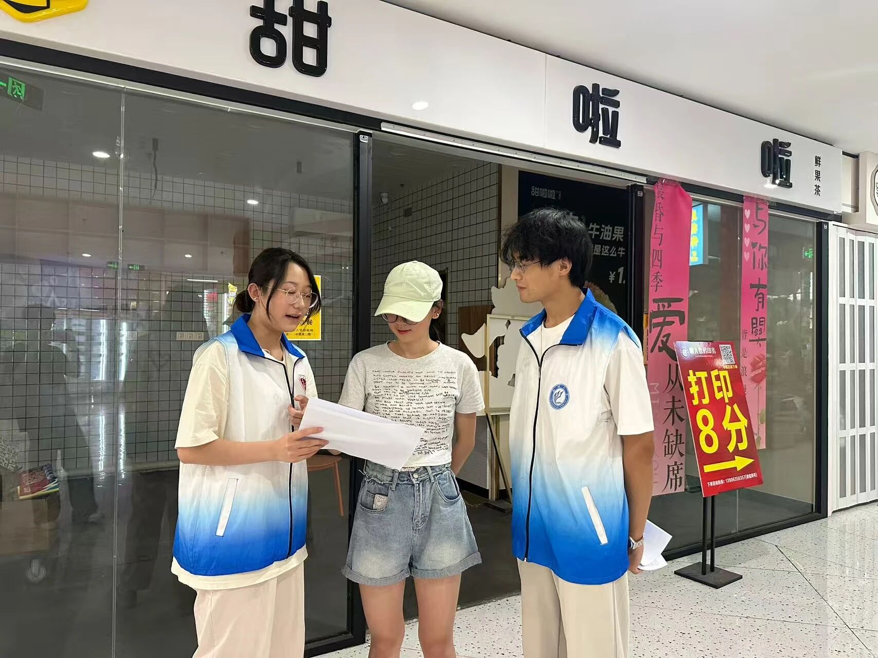 实践队深入消费一线,通过结构化问卷、随机深度访谈及实地沉浸式观察等方法,系统梳理可降解材料的消费现状与公众认知图谱。在商场可降解产品专区,队员们策划并开展“可降解材料知识问答”互动环节,以可降解垃圾袋、包装瓶等实物为案例,向消费者生动阐释其降解原理与环境价值,实现专业知识向大众科普的有效转化;在社区场景中,团队不仅组织问卷调研,更结合面对面访谈开展科普宣传,增强居民对可降解材料的认知与接受度,推动“专业小课堂”与“社会大课堂”双向赋能。