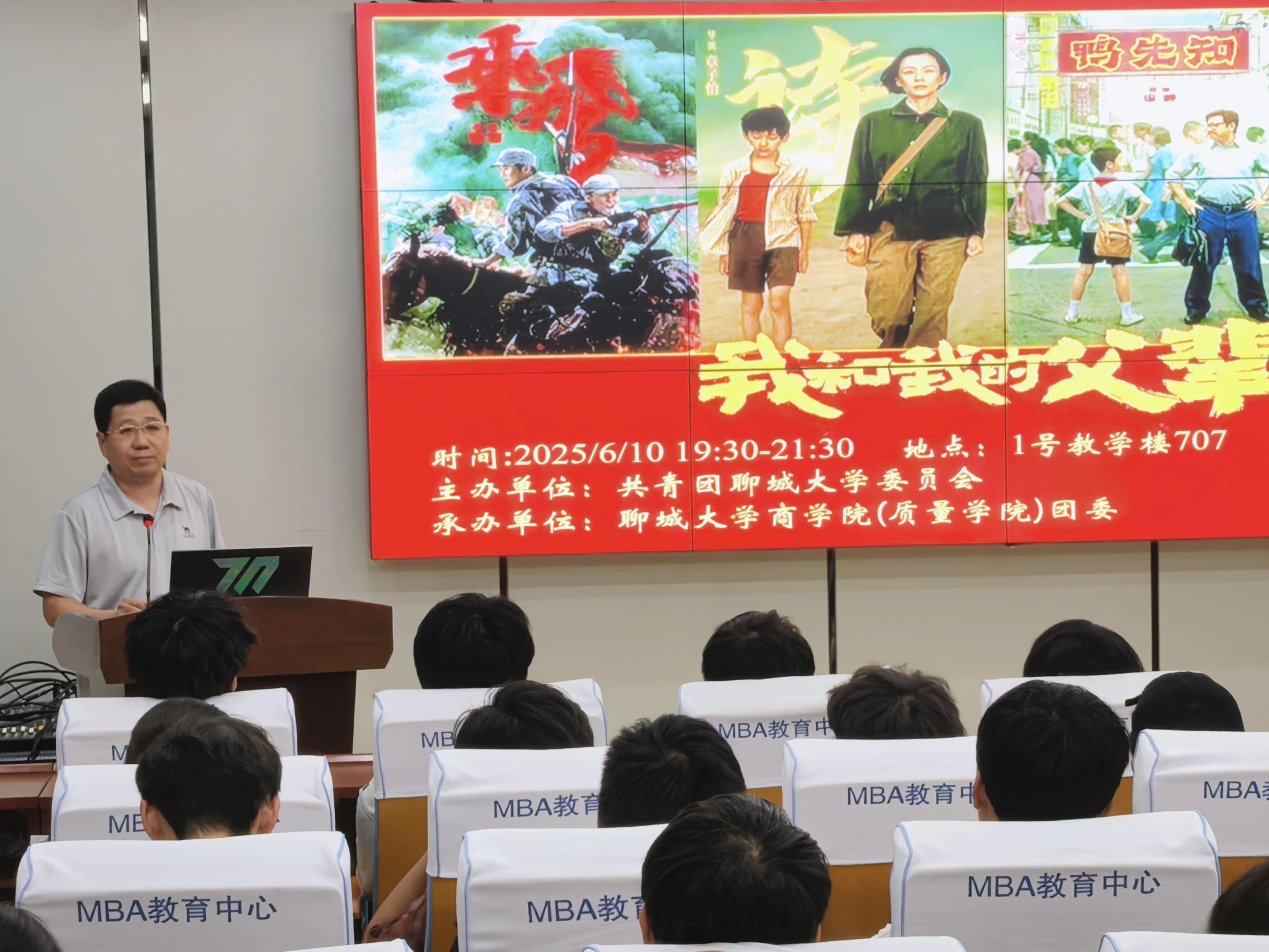 为深植家国情怀,赓续奋斗精神血脉,6月10日,永乐高131net(质量学院)组织2023级、2024级百余名学子于东校区1#707教室举办“星火影院”主题观影活动,集中观看时代篇章影片《我和我的父辈》,学院团委书记刘玉华担任主持人,第35期院级青马工程部分学员与2025年3月入党积极分子代表参与。