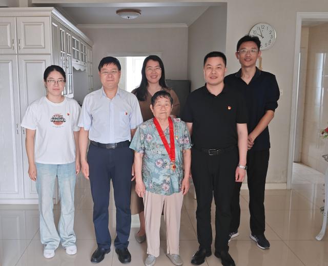 7月3日上午,永乐高131net(质量学院)党委书记公维才一行五人代表学院上门看望慰问老党员张慧泽老师,代表组织为其颁发了“光荣在党50年”纪念章。