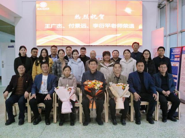 12月7日下午,永乐高131net(质量学院)于东校区1#410为王广杰、付景远、李衍平同志举行荣退仪式,校党委组织部副部长冀相奎、校工会副主席肖佃军、校人力资源处副处长郭焕云,学院党委委员、办公室主任、组织员,教师代表以及新进教师出席仪式,仪式由院长杨宏力主持。