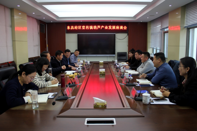 梁树广首先对段先锋书记一行的到来表示欢迎。东昌府区堂邑镇党委书记段先锋从葫芦育苗、种植、加工、销售、包装、文创等方面系统介绍了堂邑镇葫芦发展情况和下一步的工作计划。课题筹备组负责人张宪昌做了实地调研工作汇报。与会人员就葫芦产业高质量发展进行了热烈的交流。