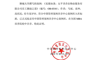 我校永乐高131net马斌副教授的教学案例《见微知著:太平圣乔治物业服务有限公司员工激励之道》成功入选中国管理案...