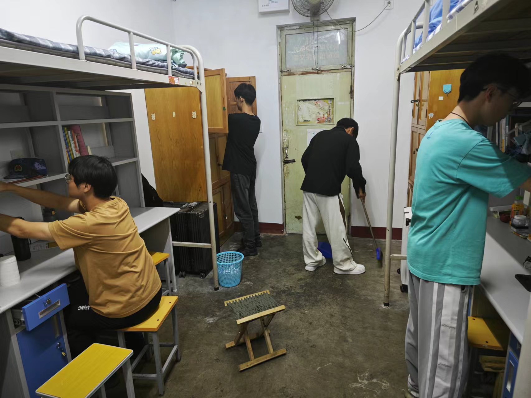 活动过程中,同学们分工明确、协作有序,综合运用扫帚、抹布等清洁工具,对1号教学楼和群星公寓9号楼的各个角落尤其是卫生死角进行了彻底的清扫,与此同时,为强化秋季卫生防疫效果,同学们还对两地公共区域进行了全面的消毒处理,有效降低了细菌病毒的传播风险。从地面到墙面,从门窗到座椅,持续数小时的防疫清扫过程中,同学们始终保持着高昂的斗志和饱满的热情,在各位同学的努力和配合下,学院教学楼地面整洁无垃圾杂物、卫生工具摆放整齐,群星公寓9号宿舍楼窗明几净、被褥整齐、床铺平整,为同学们创造更加安全、整洁的学习和生活环境的同时,也从侧面有效引导并帮助学生培育了积极健康的生活方式。