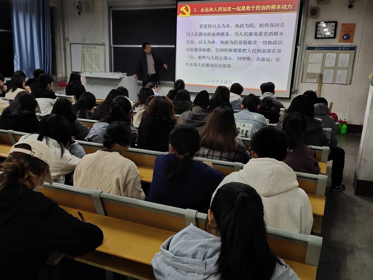 培训围绕党章展开,刘子平教授以幽默风趣的演讲方式,带领同学们深入学习了习近平总书记系列重要讲话的核心内容,深度阐释了党章,以号召同学们做一个合格的入党积极分子。培训内容分为三部分,其一是以习近平新时代中国特色社会主义思想武装全党。用正确思想指引全党,保持党的先进性和纯洁性。其二是以党章为镜,坚决维护党章党规的权威性。号召同学们廉洁自律、遵守党章。其三是做忠诚、干净、担当的好党员。党员要做到先人后己、先公后私,为人民服务;要反对两面人,对党规党章绝对忠诚,坚信唯物主义。刘子平教授还结合实际和时代现实,号召同学们努力学习,成为可造之材,提高创新意识,增强创新本领。入党积极分子们受到了鼓舞,情绪高昂,认真记录学习,培训取得了良好的效果。