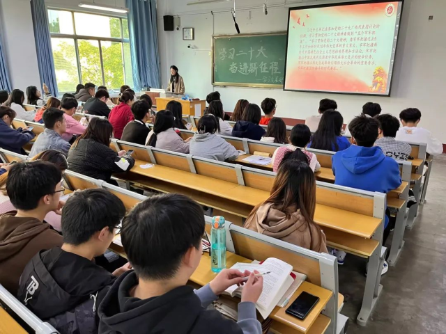 奋进新时代,争做新青年。为学习党的二十大报告精神,强化党史学习教育,加强学院学生思想政治教育,根植爱党爱国情怀,10月23日,永乐高131net于东校区1#305举办“永远跟党走 奋进新征程”活动。