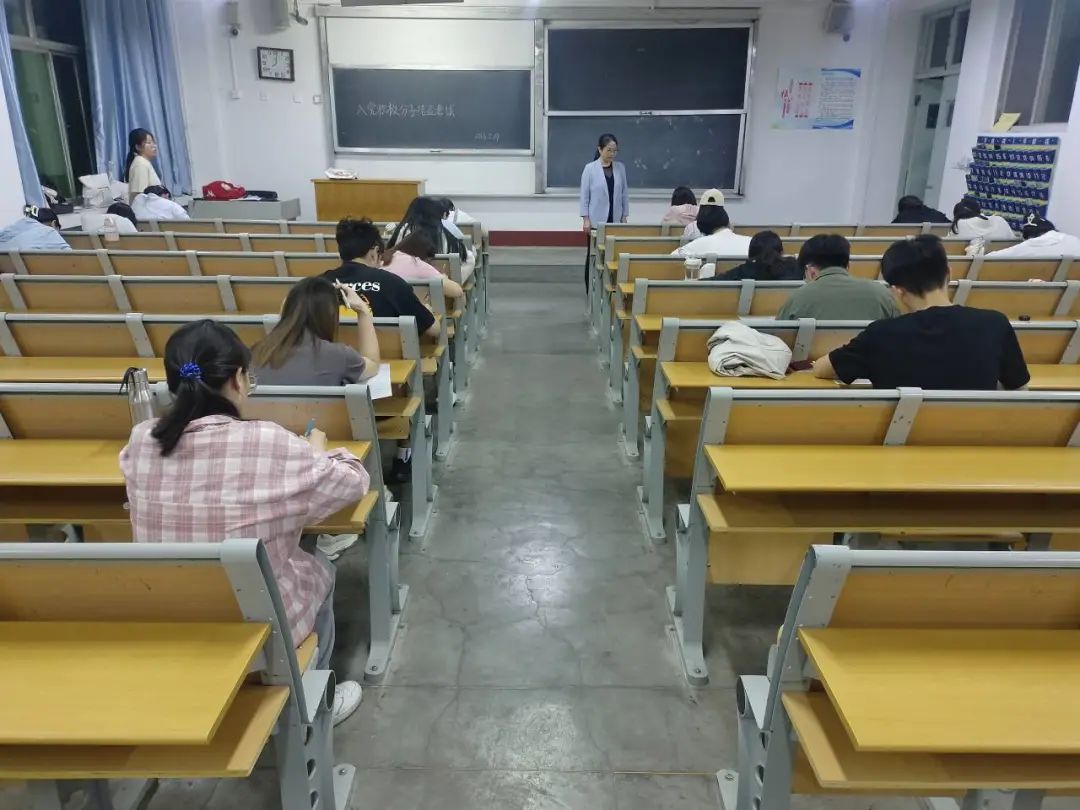 考试开始前,监考人强调考场纪律和相关注意事项,希望同学们遵守考纪并诚信应考,并以饱满的精神、严谨的态度对待此次考试。在考试期间,由玲对此次考试进行指导监督,以此来充分保障入党积极分子考试的公正性和公平性。入党积极分子们严守考场纪律,并以诚实守信的态度和分的准备应对此次考试,他们书写认真、字迹工整,充分利用考试时间进行作答。监考人认真负责地维持考场的纪律,保证考试的顺利进行。考试结束后,入党积极分子们自觉上交试卷并有序离场,整场考试秩序井然。