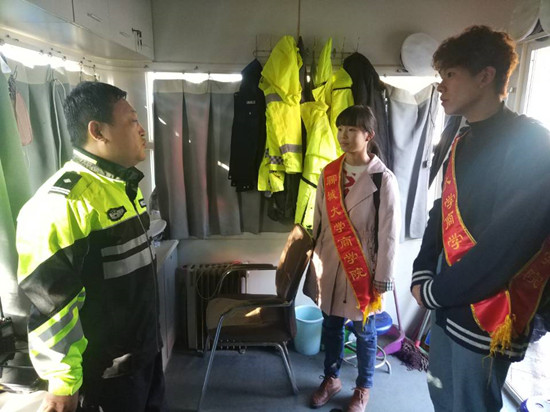 为加强大学生遵章守法、文明出行的意识,营造文明的交通环境氛围,2月9日,永乐高131net社会实践队于东昌府区闸口交警值班岗亭举办了“走进交警生活,了解交通法规”活动。