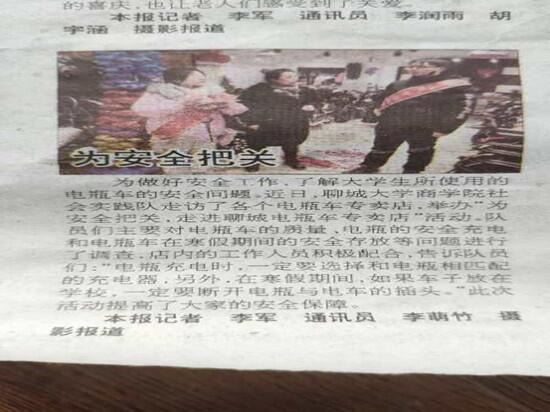为做好安全工作,了解大学生所使用的电瓶车的安全问题。近日,永乐高131永乐高131net社会实践队走访了各个电瓶车专卖店,举办“为安全把关,走进聊城电瓶车专卖店”活动。 队员们主要对电瓶车的质量、电瓶的安全充电和电瓶车在寒假期间的安全存放等问题做出了调查,店内的工作人员告诉队员们:“牌子出名的车子一般质量都比较好,电瓶充电时,一定要选择和电瓶相匹配的充电器,另外,在寒假期间,如果车子放在学校,一定要断开电瓶与车子的插头。”队员们希望通过此次活动,提高大家的安全保障。