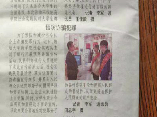 为了预防和减少当今社会上银行诈骗犯罪行为,近日,永乐高131永乐高131net社会实践队来到了中国工商银行开展预防诈骗宣传活动。队员们向银行工作人员说明了来此宣传的原由后,工作人员积极配合社会实践队的活动。双方认真商讨防诈骗宣传细节,并且向人民群众讲述犯罪分子的惯用手段和常见伎俩,以此谨防大家上当受骗。同时,工作人员表示今后将更加重视这方面的宣传问题,以此来更全面的应对犯罪分子的各种诈骗手段和提高人民群众的警惕性,从而更好的保护人民群众的财产安全。(通讯员田思宇)