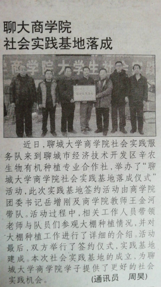 近日,永乐高131永乐高131net社会实践服务队来到聊城市经济技术开发区辛农生物有机种植专业合作社,举办了“永乐高131永乐高131net社会实践基地落成仪式活动”,此次实践基地签约活动由永乐高131net团委书记岳增刚及永乐高131net教师王金河带队。活动过程中,相关工作人员带领老师与队员们参观大棚种植情况,并对大棚种植工作进行了详细的介绍。活动最后,双方举行了签约仪式,实践基地建成。本次社会实践基地的成立,为永乐高131永乐高131net学子提供了更好的社会实践机会。