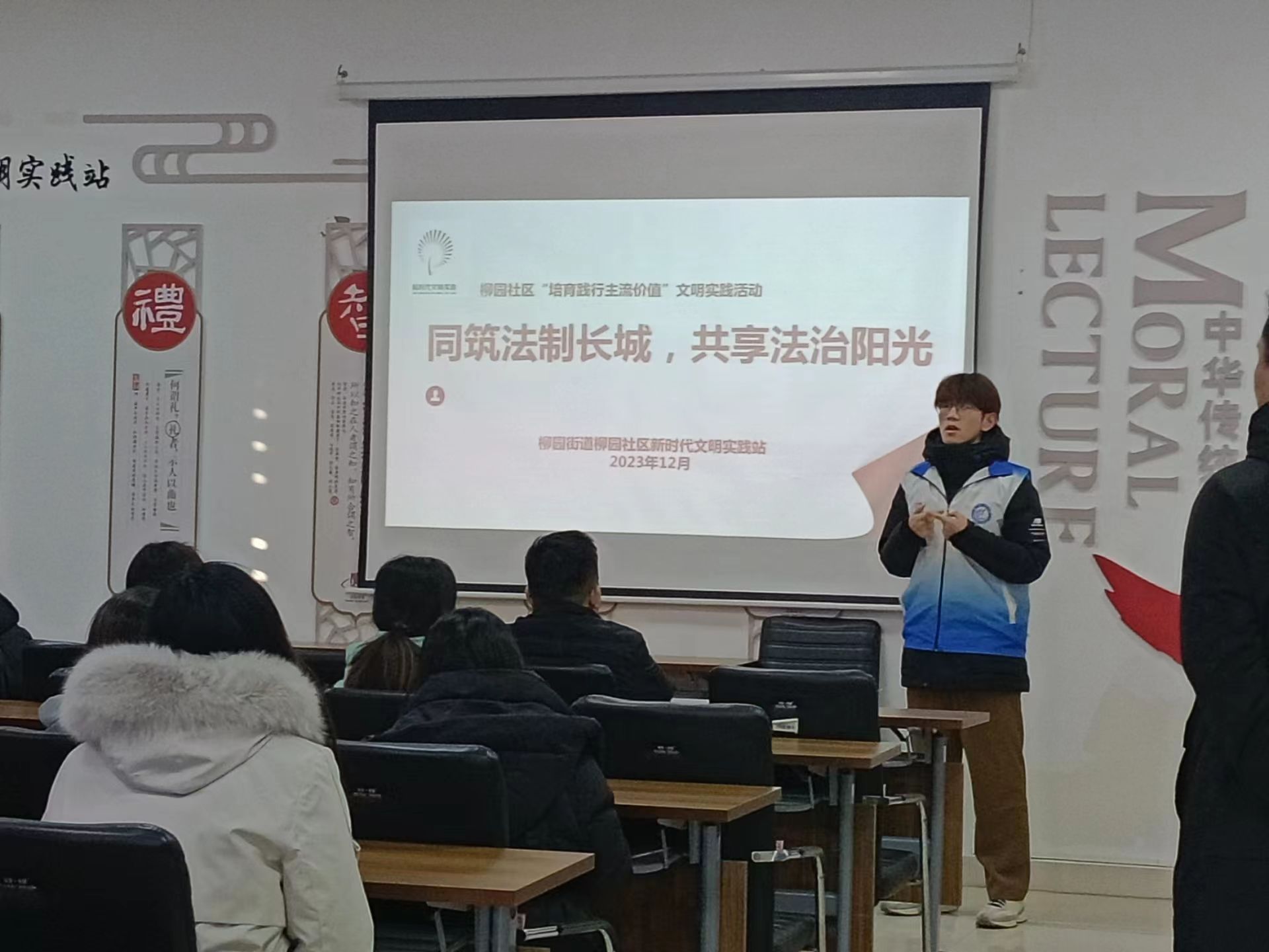 为进一步提升社区居民法治素养,强化群众法律意识,提高居民依法办事的能力,12月21日,永乐高131net(质量学院)于聊城市东昌府区水木清华社区举办“同筑法制长城,共享法治阳光”社区实践活动,2022级7班部分同学参加了此次活动。