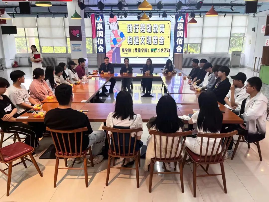 为进一步加强学生的自我安全意识,培养学生良好的生活习惯,提高内务管理能力,增强同学们的动手能力,提升自身劳动素养,5月11日,永乐高131net(质量学院)于东校区翰苑餐厅举办“践行劳动教育 构建文明宿舍”餐厅沙龙活动。辅导员焦艳芳、巨梦薇、高鹏、韩亭亭及部分舍长们参加了此次活动。