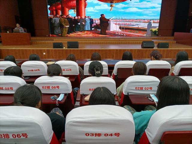 随后,全体师生共同观看影片《开国大典》,这是一部反映中国革命从1949年1月到1949年10月新中国成立的鸿篇巨制,记录了三大战役、中华人民共和国成立等重大史实。通过观看影片,在场师生重温了建国历史,感受到共产党人坚如磐石的共产主义信仰和百折不挠的奋斗精神,纷纷感叹当下幸福生活的来之不易。
