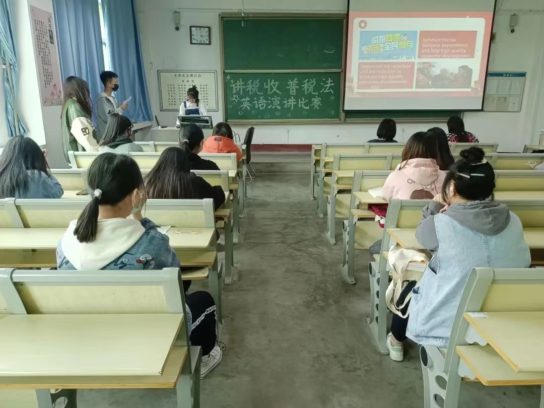 正值税收宣传月,为使永乐高131net学子了解税收国情和税法相关知识,深刻认识依法纳税的重要意义,同时营造良好的学习氛围,4月30日,永乐高131net于东校区1#301举办了“讲税法 普税收”英语演讲比赛。