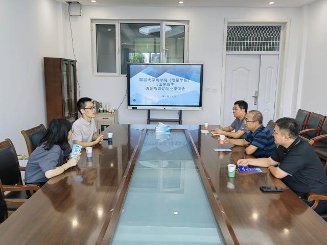 会上,李树房对各位来宾表示热烈欢迎,并向企业介绍了学院的基本情况,专业特色、学院的人才培养计划及毕业生就业现状等方面的情况,并对学校“访企拓岗促就业”专项活动进行交流探讨。李晓明从公司占地面积、职工数量、业务范围等方面讲述公司基本发展概况,并简要介绍了公司针对应届毕业生开展的新鹰计划和优才计划。刘玉华就本学院学生特点开展就业指导,和山东顺丰交换了意见,并希望通过此次座谈会,双方能够在人才培养,产教融合、学生实习实践等方面开展深度合作,努力实现毕业生更充分更高质量就业。高鹏指出,希望以此次访企拓岗促就业座谈会为契机,进一步加强交流,充分发挥各自优势资源,搭建起学生与企业之间交流的平台与桥梁。
