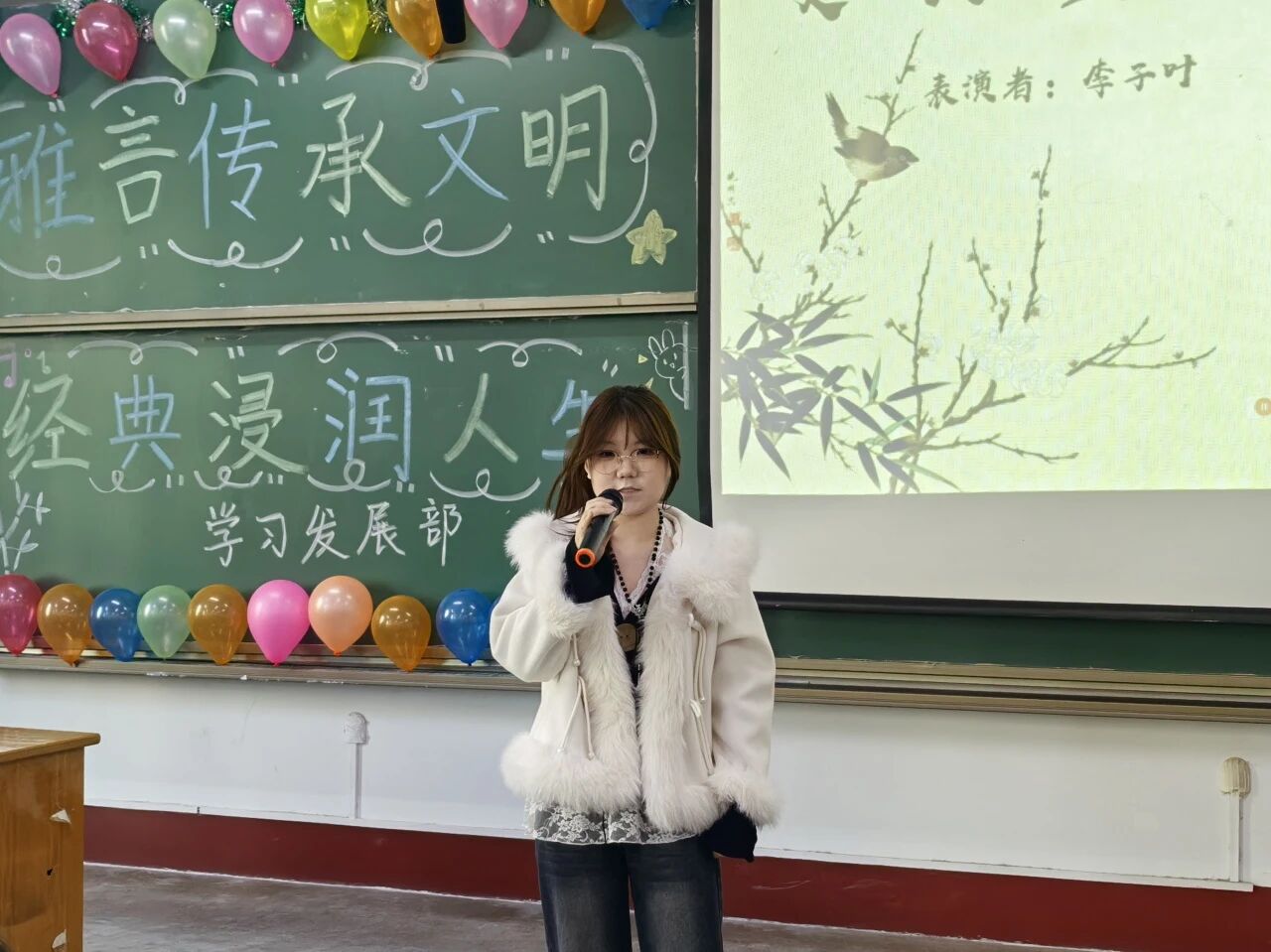 2024级13班金丽丽表示,此次活动意义非凡,“在参与过程中,我领略到了中国传统文化的风采,点燃了对古典文化的热情,更增强了民族自信心和自豪感。我将带着对经典的热爱踏上新征程,成为传承者,让雅言文明在新时代闪耀”。
