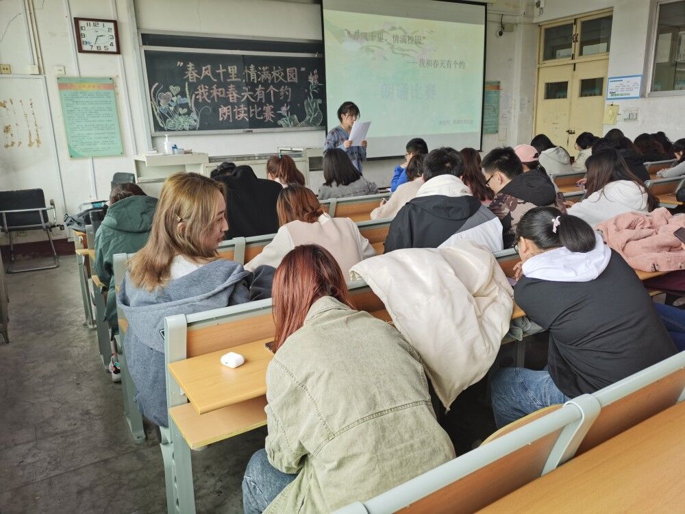 同学们一句“又是一年春好处”道出了对春的发自内心的赞美。铿锵有力的四句关于春的排比,表达了对春到来的激动。将爱与春的生机联系在一起,无数生命孕育在春的温暖中。“春色满园关不住,一枝红杏出墙来”寄予了同学们对春的期盼,对未来的向往。丝丝的春雨,淡淡的清茶,淡化了无数离愁,令人陶醉。“回眸一笑是安然”提醒同学们要始终保持安然,放开心胸坦然而释怀,积极面对新一学期美好的大学生活,将希望播种在多彩的学习生活中。同学们依照报名的顺序,轮流朗诵准备好的文章。朗读结束之后,评委公布分数,选出优秀的参赛选手,并进行拍照留念。主持人总结了朗诵比赛的积极意义,朗诵比赛正式结束。
