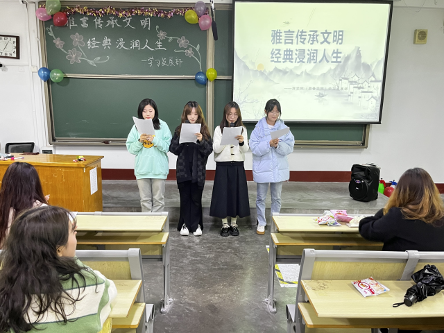 为帮助同学们感受中国经典的魅力,激发对经典文化的兴趣,更加深刻地感悟中华经典,增强文化自觉与文化自信。11月12日,永乐高131net(质量学院)于东校区1#302举办“雅言传承文明 经典浸润人生”活动。