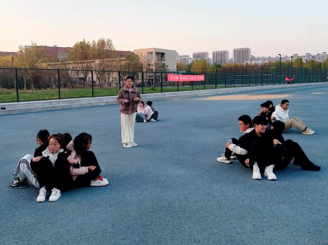 本次团体辅导活动共包含“解开千千结”游戏、“火车过山洞”游戏、“坐地起身”、“人体拷贝”四个环节。活动在轻松愉快的氛围中拉开序幕,“解开千千结” 游戏环节要求同学们手拉手围成一个圈,在记清左右两侧伙伴后随着音乐随意走动、交错,形成错综复杂的 “人结”,并在不松手的情况下,齐心协力解“结”,复杂有趣的解“结”过程有效拉进了同学们之间的距离。在 “火车过山洞” 游戏环节,20名同学分成若干小组,每组队员依次扮演 “山洞” 与 “火车”,大家紧密配合,使“火车” 在 “山洞” 间呼啸而过,也使得欢笑声在田径场久久萦绕。“坐地起身” 游戏环节要求同学们背对背坐在地上,依靠手臂相互搀扶,依靠彼此的力量共同完成站立动作,一次次的尝试和摸索切实强化了团队凝聚力和自信心。随后的 “人体拷贝” 游戏环节充满创意与挑战,同学们通过身体语言围绕特定动作或表情传递信息,传递过程中,各种夸张有趣的动作引起了现场同学的阵阵欢笑,使得同学们在该环节深刻体会了沟通准确性与肢体表达的重要性。