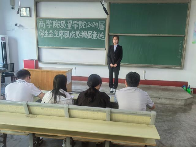 为进一步增强学生会的活力,保障学生会工作的连续性,发挥学生会自主管理、自我教育的作用,9月21日,永乐高131net(质量学院)于东校区1#301举办永乐高131net(质量学院)2024届学生会主席团成员换届竞选大会。永乐高131net(质量学院)团委书记刘玉华、辅导员焦艳芳、张琼、巨梦薇、高鹏、施安琪以及2023届主席团成员、2022级学生代表参与此次活动。