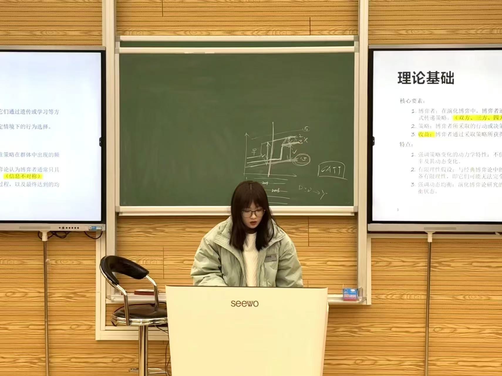 谢冉冉基于《数字化产村融合激活农村闲置资源的演化博弈行为研究》一文,利用演化博弈模型基本假设,详细介绍了论文采用的支付矩阵模型及均衡策略分析,并根据现实问题引入雅可比矩阵分析系统的稳定性和局部动态行为,对数字化产村融合项目进行了多层面的实证分析。在Stata实操部分,谢冉冉详细演示了仿真matlab实现的具体流程,帮助与会学生进一步理解了演化博弈模型的构建逻辑。