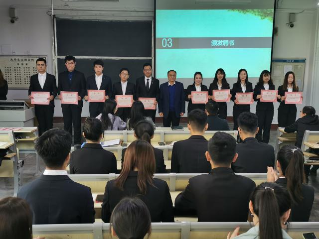 大会开始,全体起立,奏唱国歌。伴着庄严的国歌,2020届永乐高131net学生组织成立大会正式拉开了序幕。在工作人员宣布2020届学生会主席团成员、团委委员及部长聘任决定后,由党总支副书记许杰等老师为其颁发聘书。