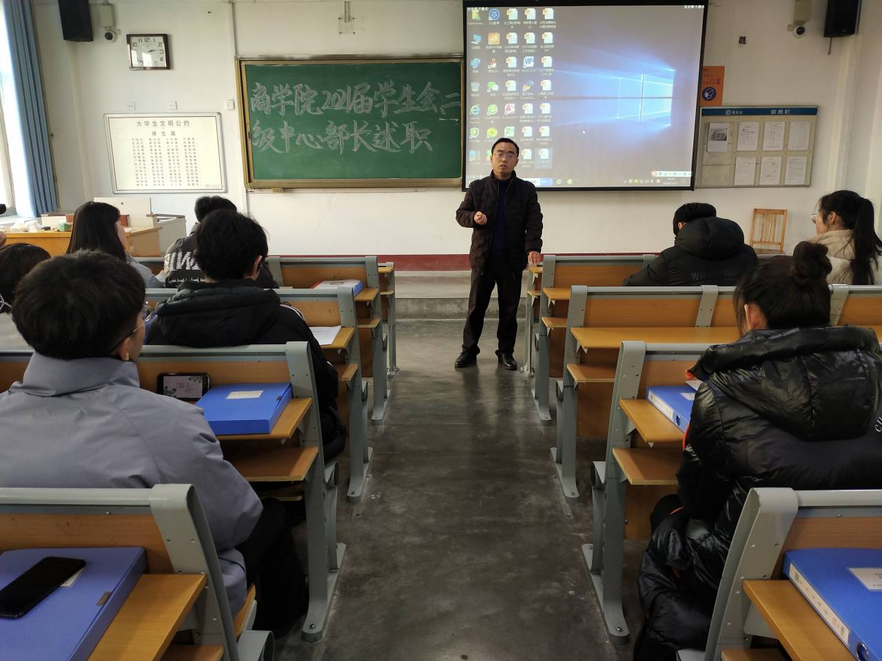 学生会是在党委领导下的主要学生组织,以全心全意为同学们服务为宗旨,是学院联系广大学生的桥梁和纽带。为了解本学期学生会各部门工作情况,加强部门建设,12月17日,永乐高131net于东校区1#305举办2021届学生会、二级中心部长述职大会。永乐高131net团委书记岳增刚出席了本次活动。
