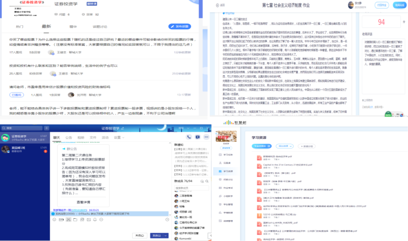 (师生之间通过群聊、网站问答、作业布置与完成、学习资源完善等方式增进交流、开阔视野)