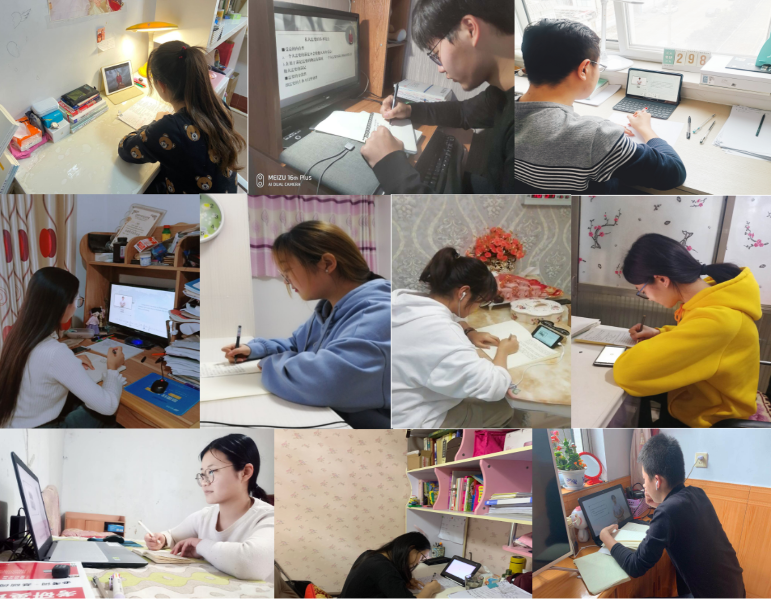 (学生们在线认真学习的场景)