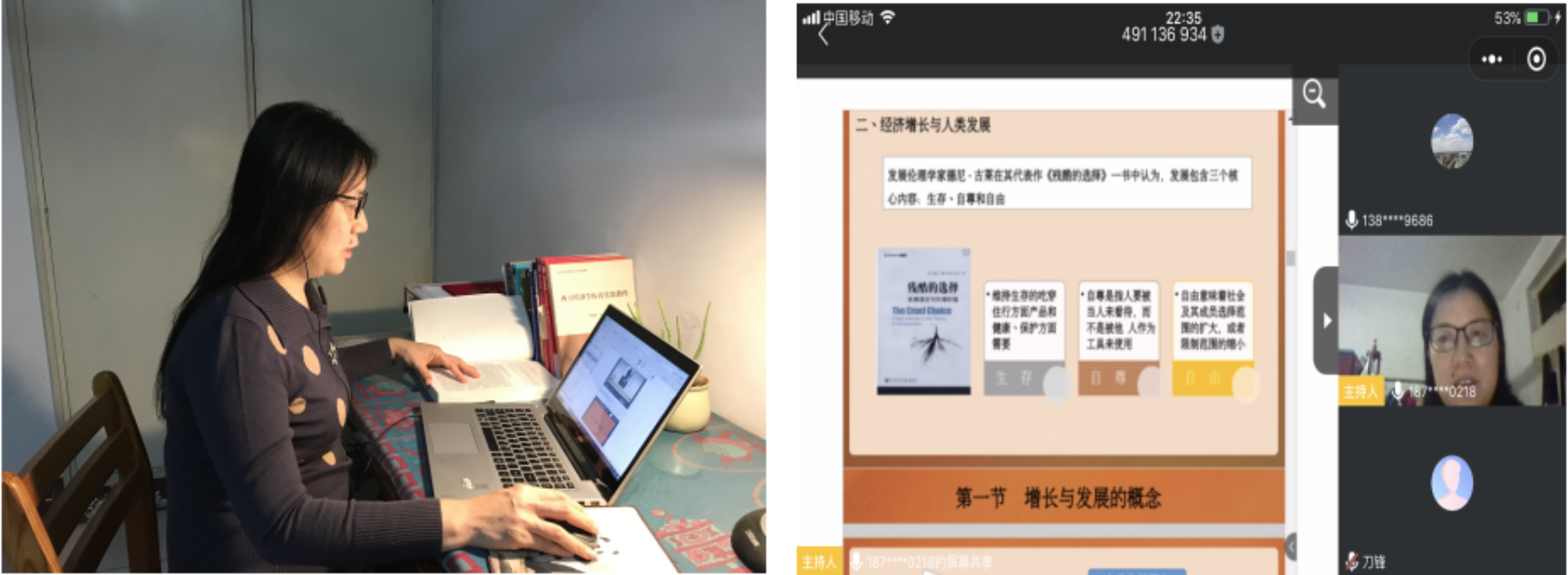 (初丽霞老师的发展经济学课程采用超星教学平台在线教学软件,配合QQ、微信和腾讯会议等辅助教学工具进行线上教学。)