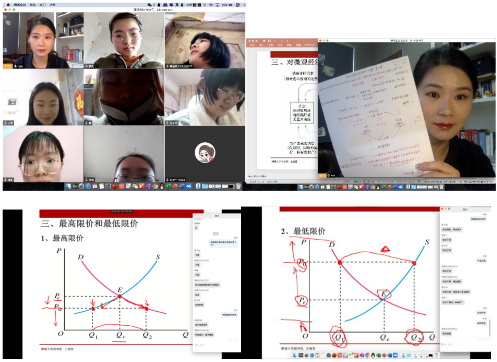 王瑞雪老师的《微观经济学》课程采用“精品在线课程+线上资料共享+直播模拟面对面课堂+随时反馈更新迭代”的四位一体教学形式,践行了“4+6+4”三维一体教学新模式。