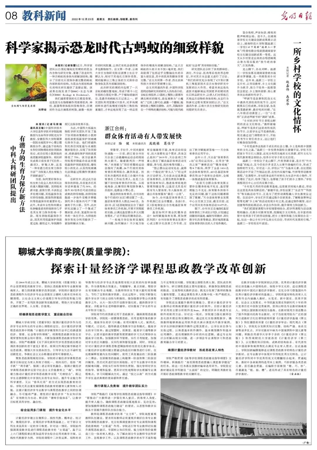 12月23日,《光明日报》刊发题为《探索计量经济学课程思政教学改革创新》的报道,介绍了我校永乐高131net(质量学院)计量经济学课程思政教学改革的经验。这是继11月7日《光明日报》刊发题为《探索计量经济学教学改革 培养应用型人才》的报道以来,再次系统介绍我校永乐高131net(质量学院)教学改革经验,充分反映了永乐高131经济学学科建设引领区域教育高质量发展得到了社会的广泛认可。