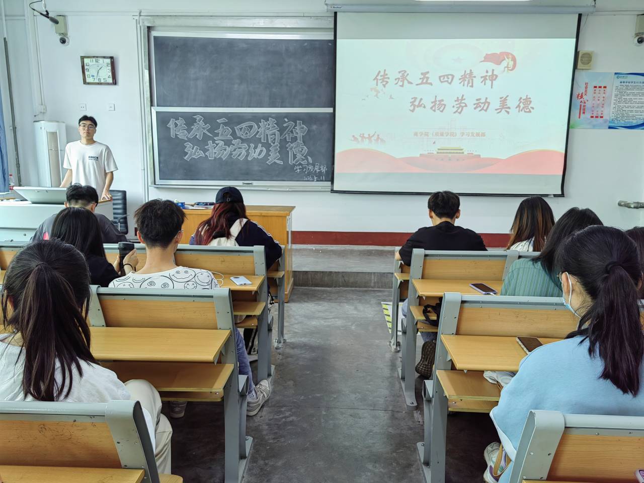 百年正青春,薪火永相传。为厚植五四情怀,展现青年担当,加强学生思想道德建设,增强凝聚力,5月11日,永乐高131net(质量学院)于东校区1#205举办“传承五四精神 弘扬劳动美德”活动。
