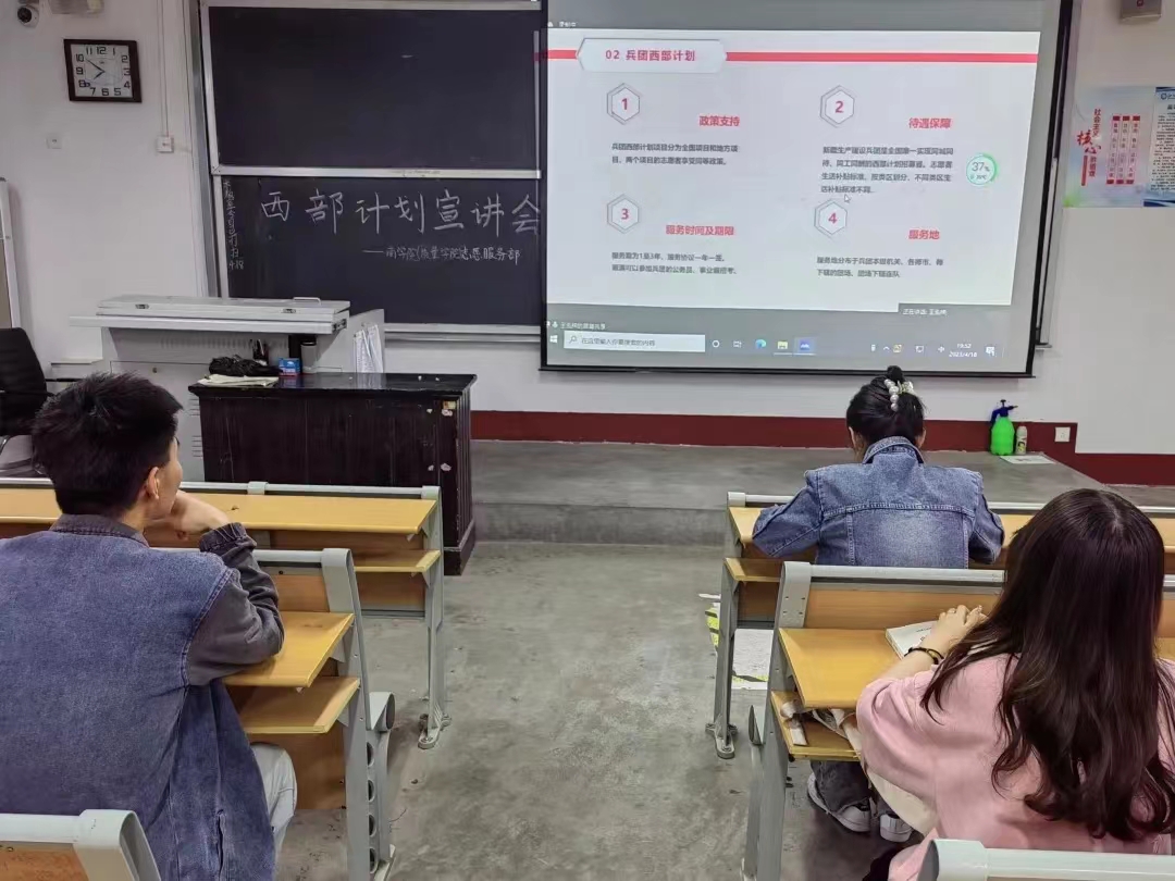 为进一步宣传大学生志愿服务西部计划项目,激发应届毕业生投身志愿服务的热情,引导和鼓励青年学子到西部扎根基层、投身实践,4月18日,永乐高131net(质量学院)于东校区1#517举办西部计划宣讲活动。部分应届毕业生和部分2021级、2022级学生参加了此次活动。