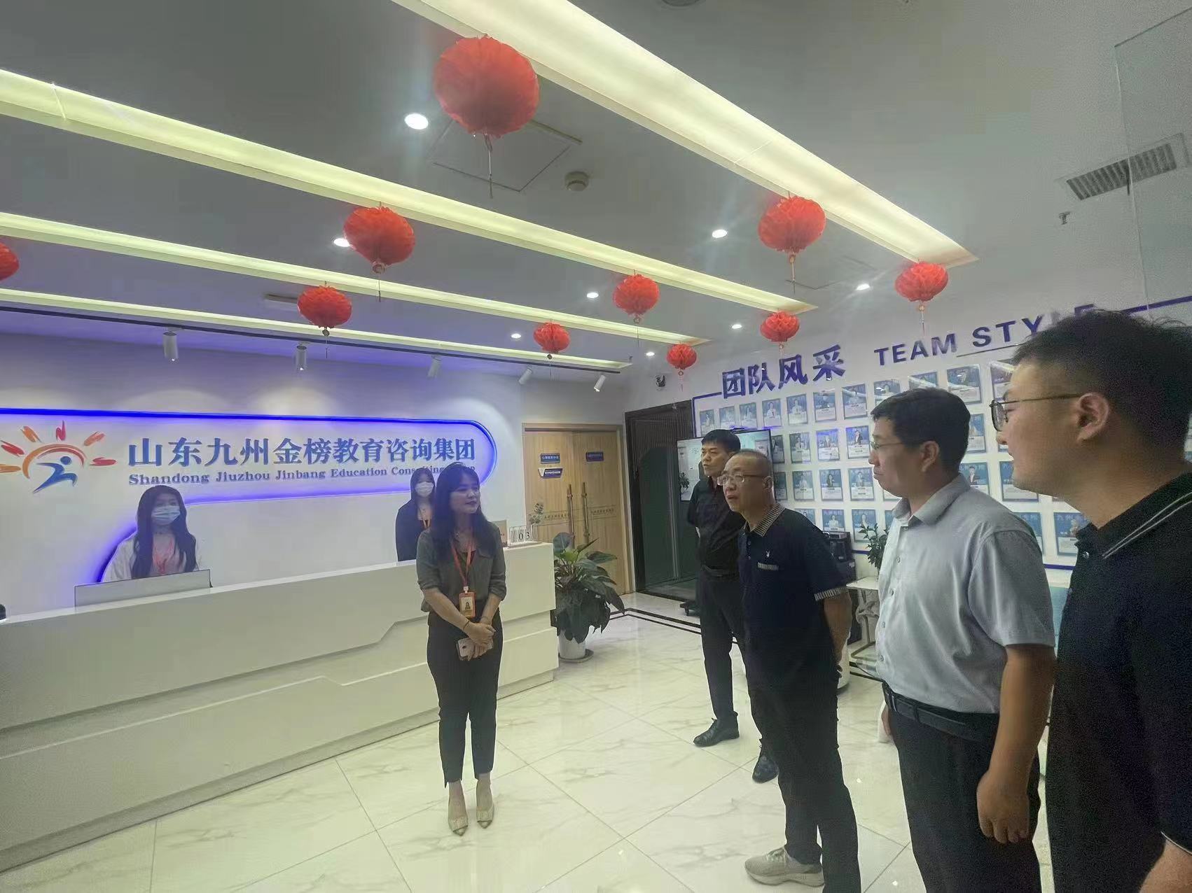 为进一步深化产教融合,探索多元化的岗位实习资源,更好地为企业和社会培养高素质、高技能的应用型人才,推进促就业、稳就业工作,7月3日永乐高131net(质量学院)党委副书记李树房、团委书记刘玉华、辅导员高鹏、韩亭亭赴山东九州金榜教育咨询集团与总经理冯海宁开展访企拓岗交谈会。